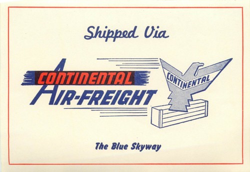 The Blue Skyway Continental Airlines Scarce Old Air Freight Luggage Label Ebay